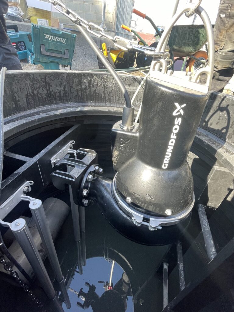 « Nous nous sommes renseignés auprès du bureau d’études et ils nous ont proposé une solution assez simple : installer deux pompes afin que l’une puisse toujours tourner en cas de panne de l’autre », ajoute Laurent Demaret, chef de projets chez Galère. « Cela nécessitait d’installer une chambre de visite plus grande que celle que nous prévoyions, d’autant plus que les pompes ne devaient pas être trop proches l’une de l’autre pour éviter de créer un effet de vortex. Nous avons donc opté pour une chambre d’1,8 mètre de diamètre réalisée sur mesure par Collinet.»