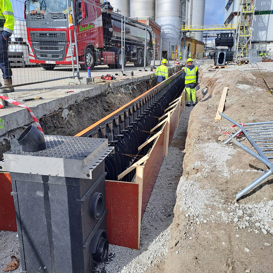 Même avec une solution personnalisée, l’eau n’est pompée que pendant une journée. La chambre de surveillance en PEHD est équipée d’un renfort en acier inoxydable pour assurer sa stabilité.