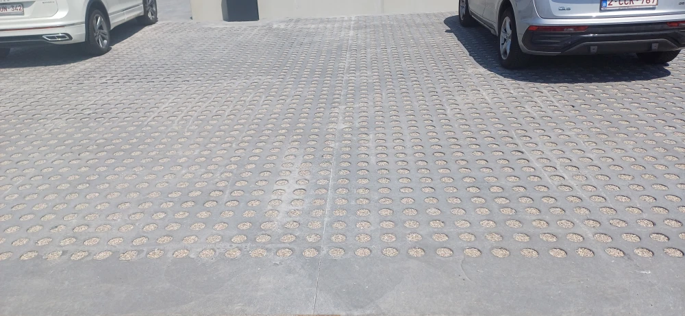 “Wat ons echt overtuigde, is de eenvoud van de plaatsing. Geen zware grondwerken of ingewikkeld betonwerk nodig. We konden de deadlines respecteren en het resultaat is perfect: een stabiele, doorlatende oppervlakte, direct bruikbaar na afloop van de werkzaamheden,” aldus Rémy Bodart, directeur van RBS Béton.